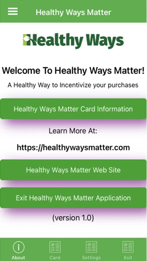 Healthy Ways Matter is the Customer Facing app for the Healthy Ways incentivize card program. Customer can obtain cards at participating retailers, such as farmers markets, direct-marketing farmers/produce stands, grocery stores and other approved food retailers to use toward their purchase of approved healthy food items. Healthy Ways does not fund the card.