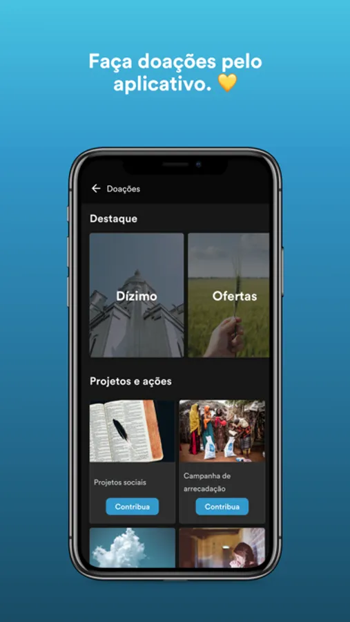 - Conecte-se com a igreja através dos grupos de interesse, receba conteúdo direcionado e obtenha sua carteirinha exclusiva.