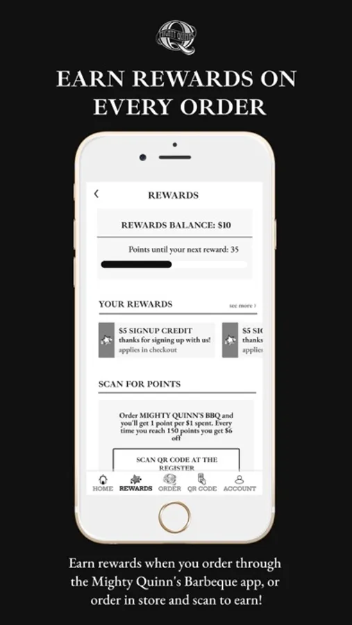 Don't let a line get in the way of your Mighty Quinn's BBQ. The Mighty Quinn's BBQ app allows you to pay with your phone, order ahead and get delivery to your door. You'll also earn rewards for every transaction that's made online or in one of our restaurants.