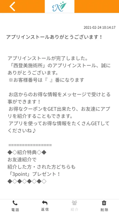 西登美施術所のアプリをSNSを通じてお友達に紹介する事ができます。