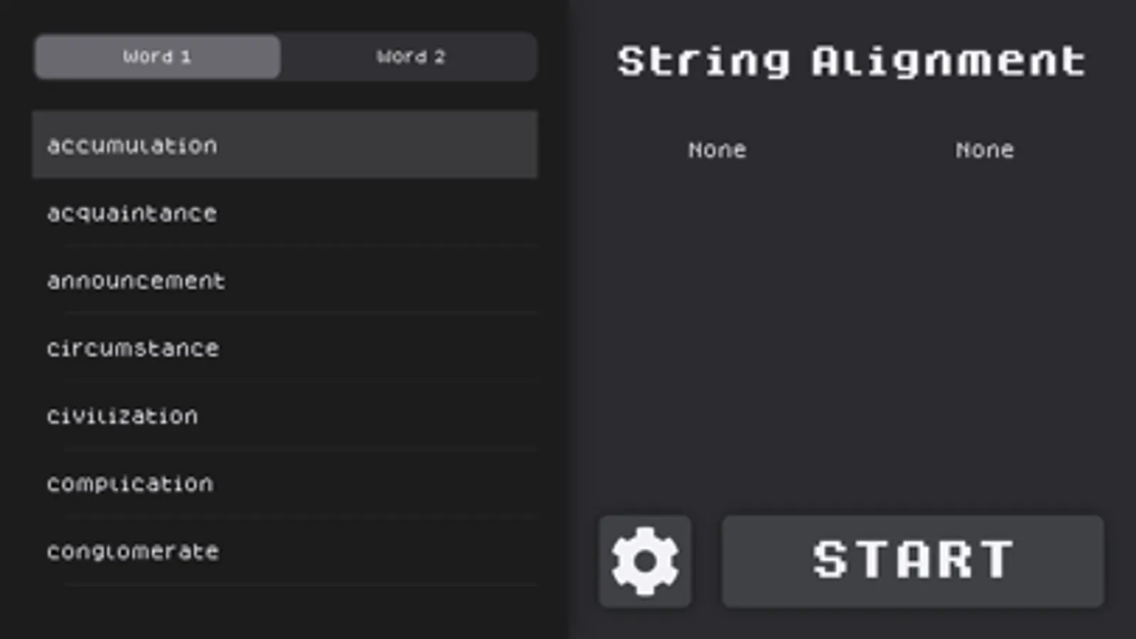 Who said dynamic programming has to be theoretical and boring. Not here, with String Alignment you can learn the Needleman-Wunsch algorithm in an ad-free and visually interesting manner. This app allows you to see the algorithm accomplish its goal of finding the best score of aligning two substrings. The app gives you complete control of the board. You can even change the colors of the squares if the simulation is paused. If you want to try something new while in the game, all you have to do is go home.