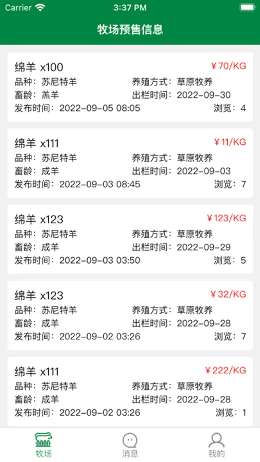 绿节点牲畜预售信息平台,绿节点审核通过后,就可以浏览牧场发布的预售信息并与之沟通交流。