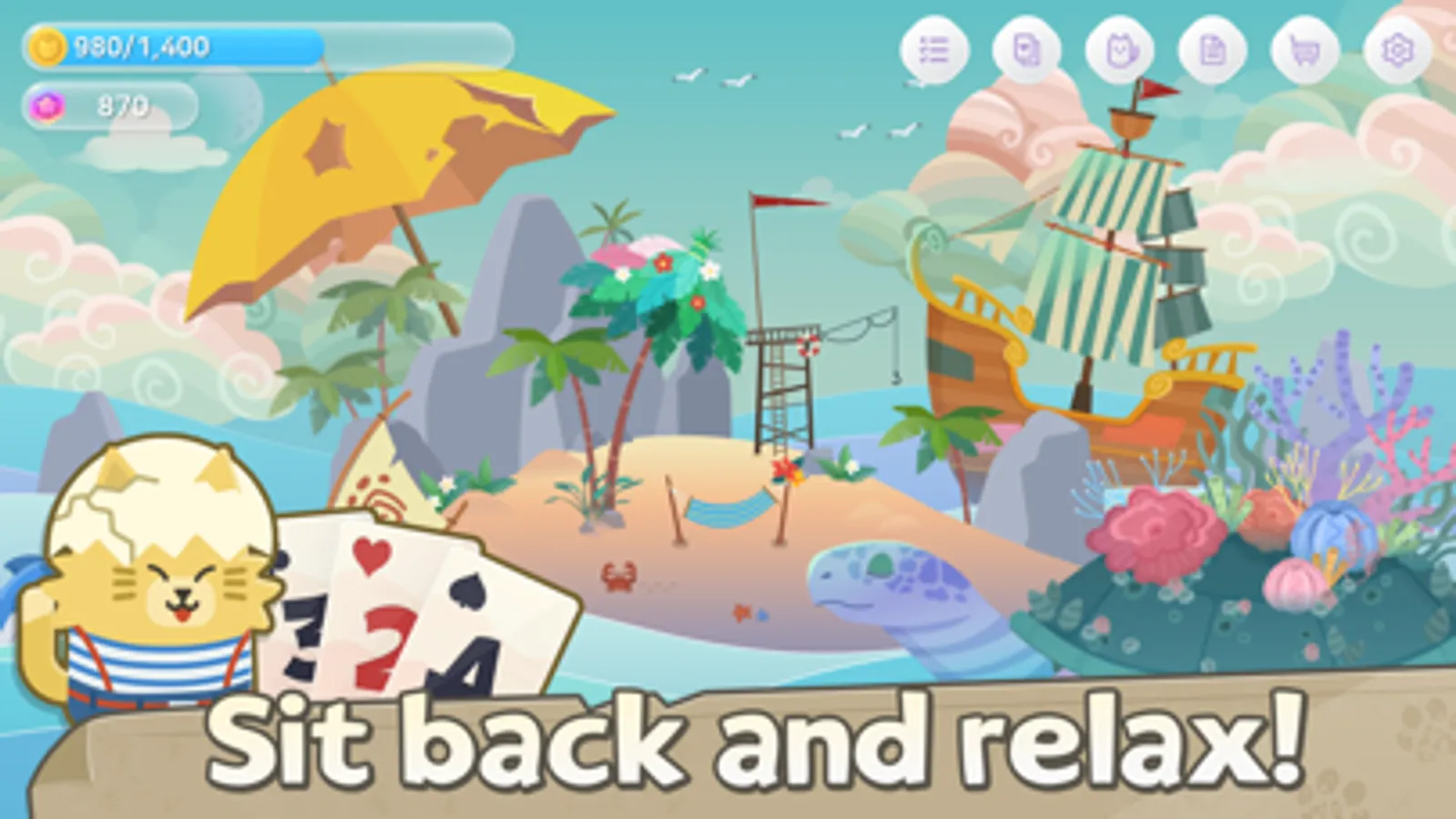 [Solitaire Cat Islands] is a relaxing game where you play card games while you travel in a mysterious world.