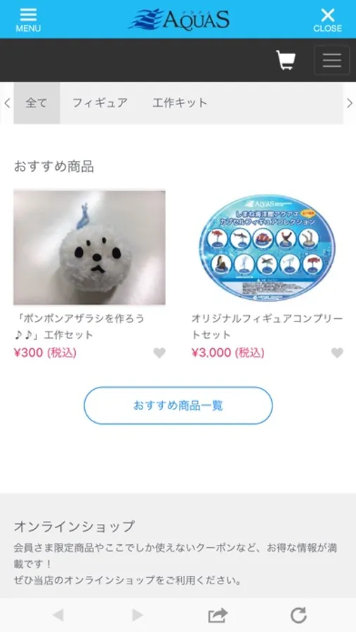 ●しまね海洋館アクアスのネットショップでお買い物ができます。
