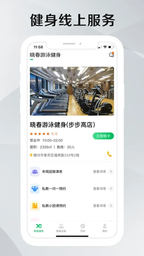 晓春健身APP致力于为用户提供互动分享、AI健身及智慧服务,通过线上线下相结合为晓春健身场馆提供全方位的数字化、信息化、智能化管理,将其打造成江西省首家全智能健身场馆。