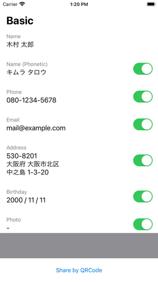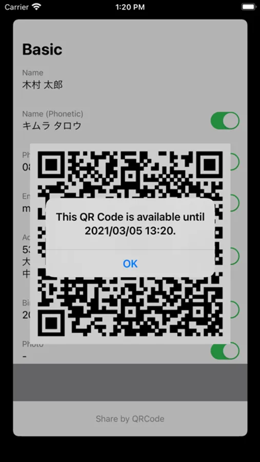 This app helps you to share your contact information super easily. All you need to do is show a QR Code.