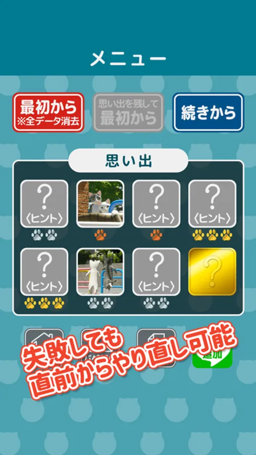 間違っても直前からやり直せるので、何度でも挑戦しよう!