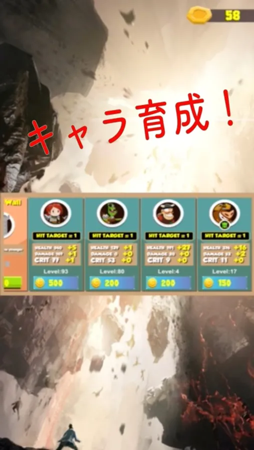 レベルアップによりキャラクターの攻撃力やHP、クリティカルヒット率が上昇します。