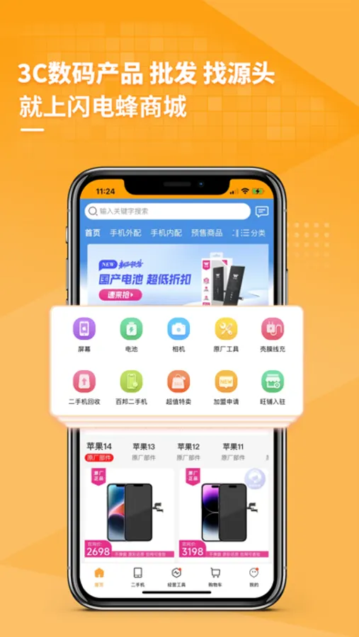 闪电蜂商家是3C垂直领域采销一体化平台,专业B2B采购批发。云集了大量的线下手机配件批发商,品牌直销商,源头厂家,支持一件代发,大量批发等业务。同行既可以在这里采购,也可以作为商家入驻,向同行供货。