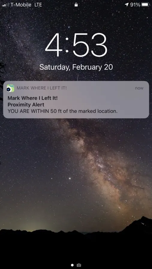 Important note: You must move 150 to 300 yards away from a marked location before you can return and expect the background notification to work. This is to trigger the location notification only when returning and near the marked location to save unnecessary battery use.