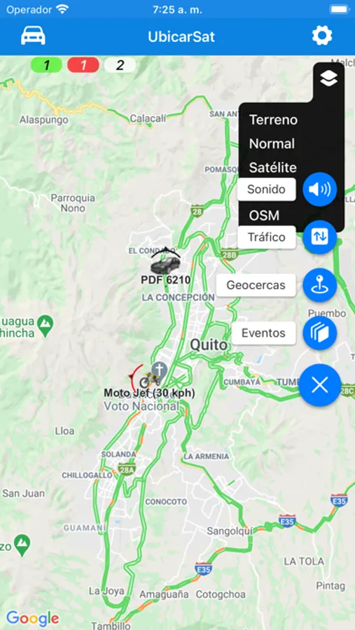 Aplicación UBICARSAT para rastreo satelital.