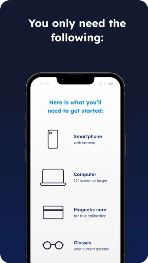 Sync the app with a computer, then scan your prescribed glasses with your mobile phone’s camera.