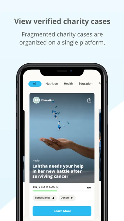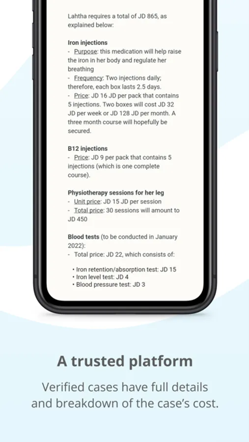 Once the case has been verified, it is presented on Tadamon’s platform, including the mobile app and website.