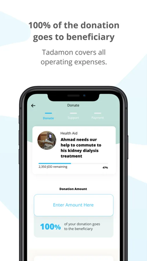 Once live on Tadamon’s platform, crowdfunding begins where anyone can donate with the click of a button on a smartphone.