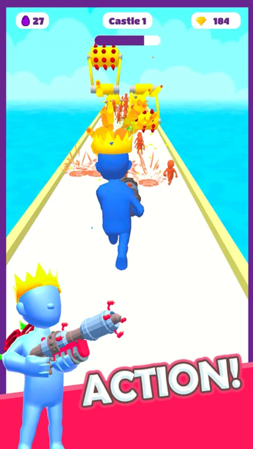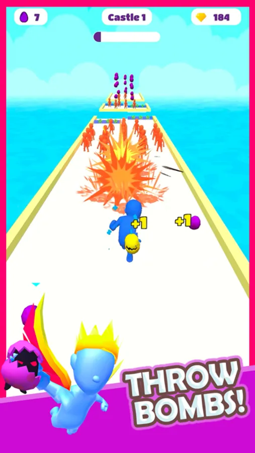 Collecting bombs and growing will make you feel like a king! A little reminder! To conquer a castle, you must collect lots of bombs and grow on your way!
