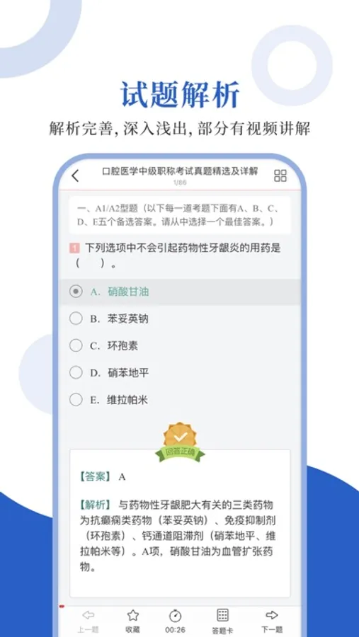 专为口腔医学考试精心准备的考试配套题库,每一道试题都有答案解析,为考试提供了充分的复习准备,可随时随地学习练习,支持手机、平板多端同时使用。