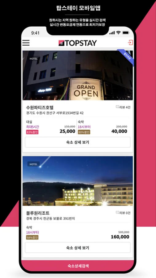 이제 “탑스테이”에서 편하게 이용하세요..