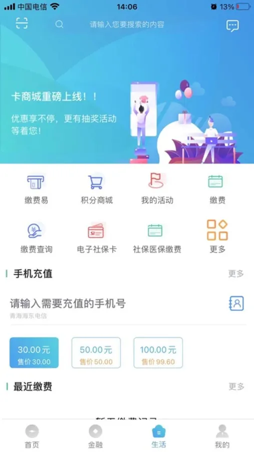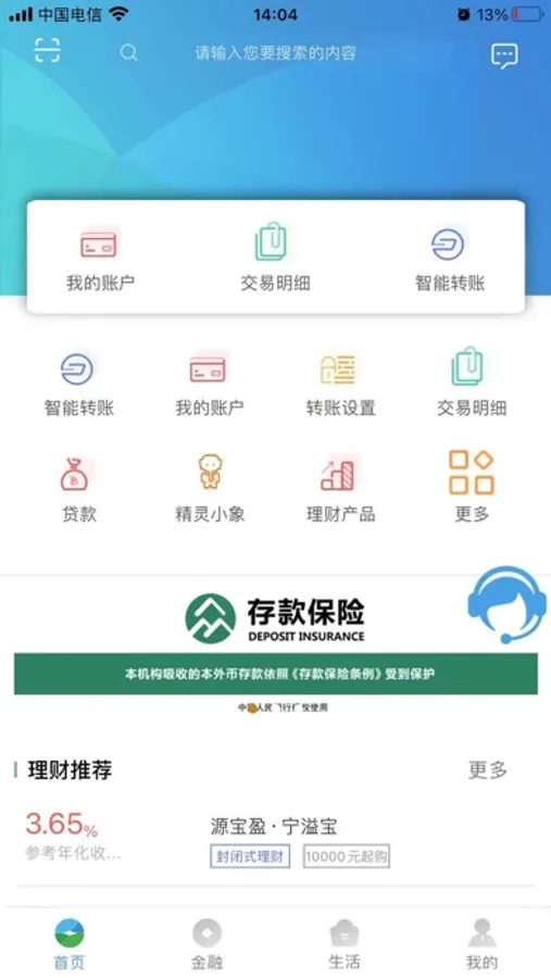 (1)功能丰富。不仅提供账户管理、智能转账、交易查询、理财、贷款等主要功能,还提供缴费易、社保医保缴费、手机充值、电子社保卡等生活服务。
