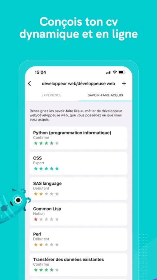⟶ Créer ton cv : Complète ton curriculum vitae et partage-le aux recruteurs ! Il sera en ligne et mis à jour avec tes nouvelles compétences.