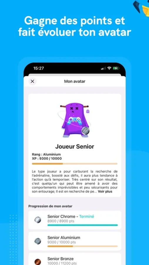 ⟶ Cumul des points : Cumule des points à la fin de chaque quiz ! Tu feras progresser ton avatar et débloqueras des fonctionnalités exclusives.