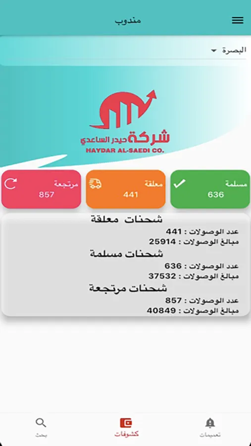 كشف حساب للعميل و المندوب