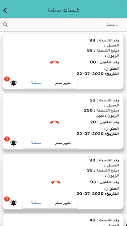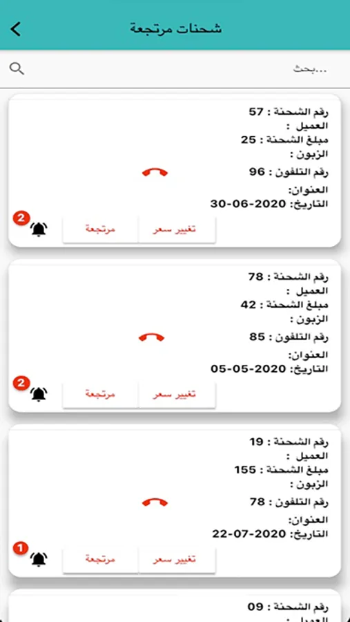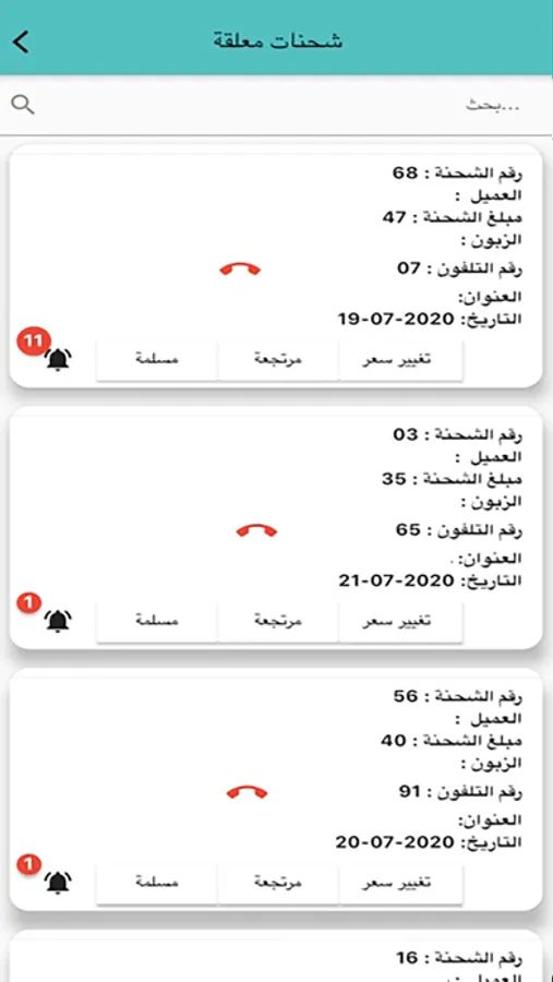 واجهة عرض طلبات التوصيل واجراء التسليم والارجاع