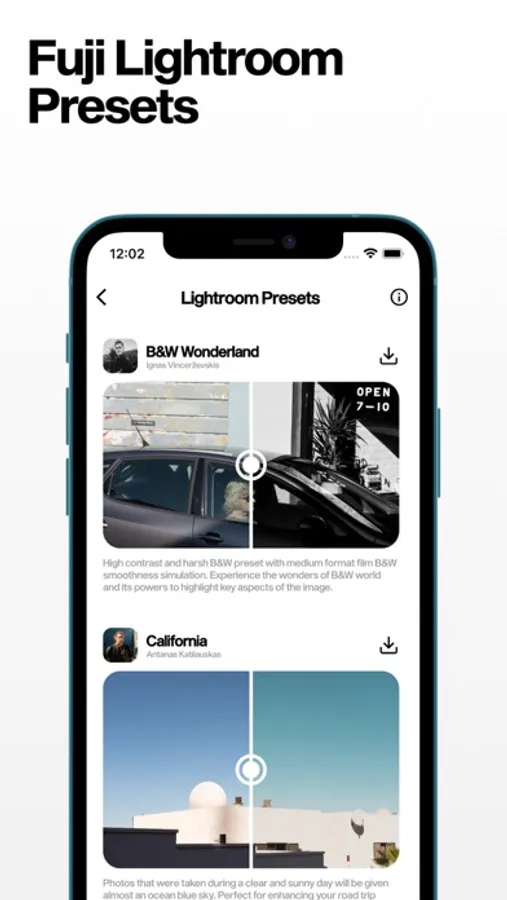 Fuji Recipes – is a free app that gives you access to Film Simulation Recipes for your X Series Fujifilm cameras. Use the Film Simulation recipes library to choose from one of many diverse looks, from popular film stock looks to B&W and many more and more to come.