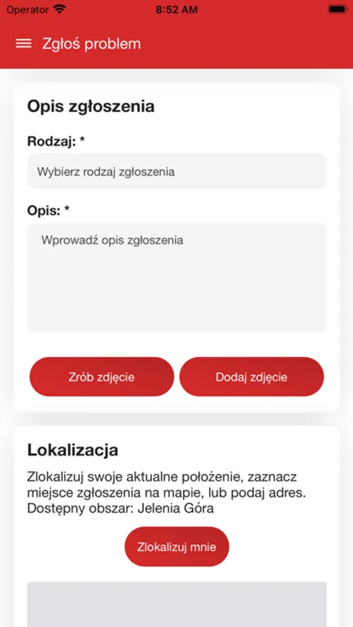 Aplikacja w bardzo prosty sposób pozwala na zgłaszanie różnych problemów czy usterek.
