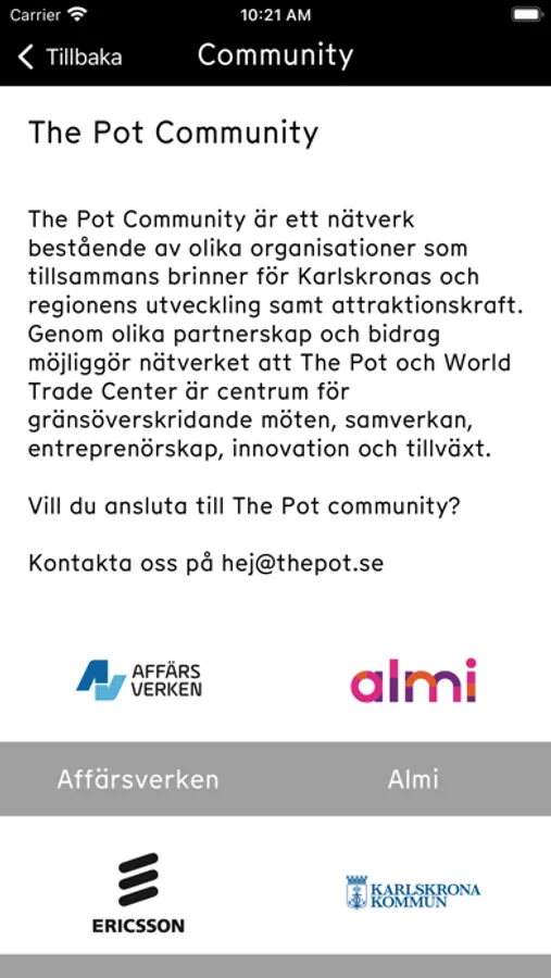 The Pot-appen är ett verktyg för människor som vill bygga broar mellan Karlskrona och världen. Som vill vara en del av utvecklingen och driva innovation och idéer in i framtiden. Tillsammans gör vi det omöjliga möjligt och får vår region att växa och möta en värld som är i ständig rörelse.