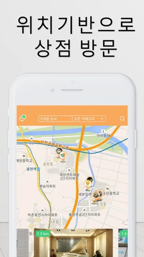 내 주변에서 가장 가까운 스마트 상점을 찾아 간편하게 이용.