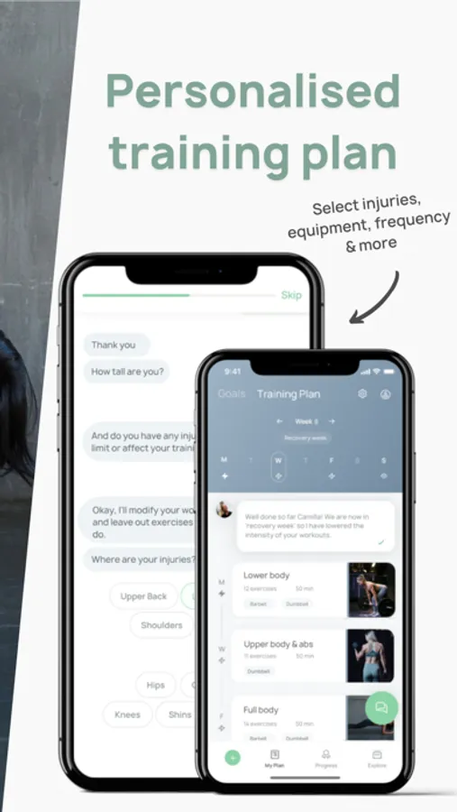 - Personalised workouts tailored to your fitness level, goals & preferences (at home + in the gym)