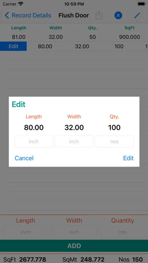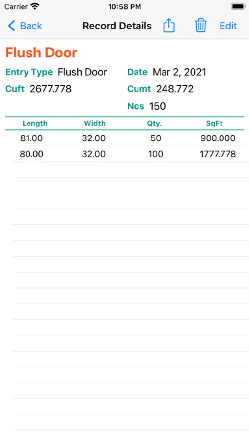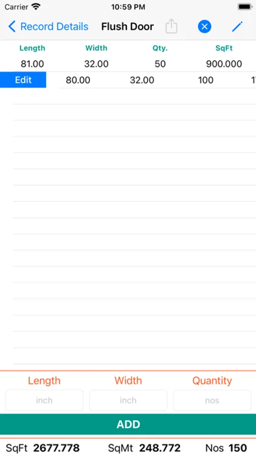 # calculate Square feet and square meter for Flush doors and Plywood/Block Board