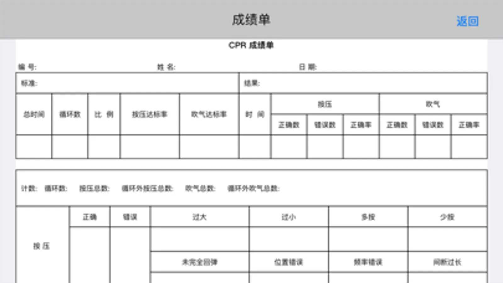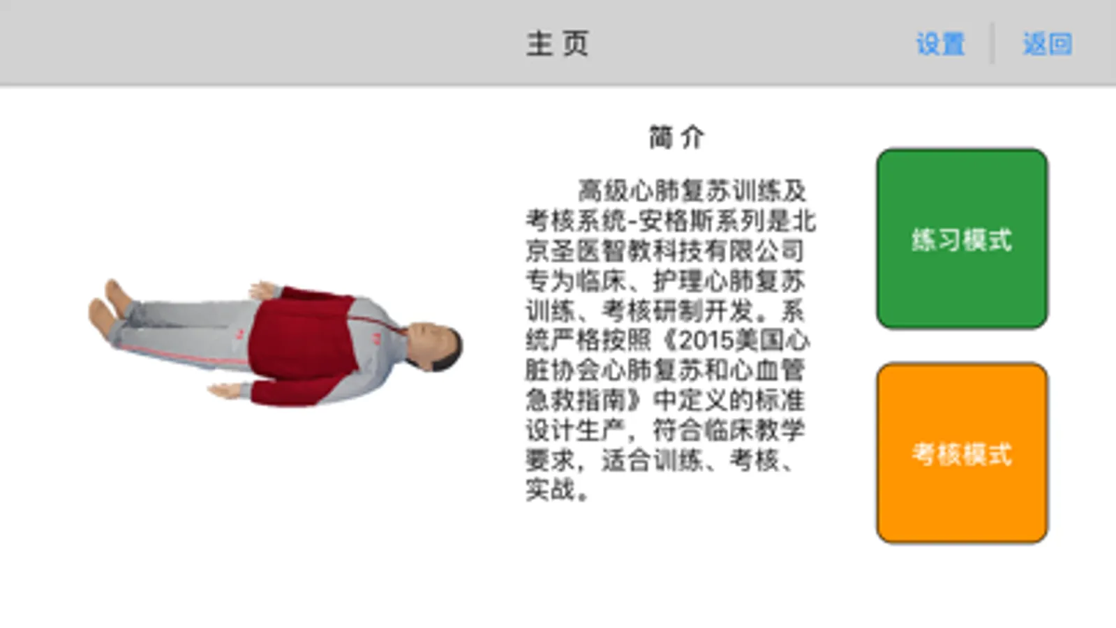 该APP用于连接心肺复苏急救教学模型人,通过扫描二维码连接模型人蓝牙获取数据交互给学员展示操作标准,学员可在教学模型人上进行学习操作,同时操作结果与标准急救数据设置参数进行比对,计算操作正确性,从而了解学习效果,让学员学习心肺复苏急救实际操作技术,普及培养急救知识