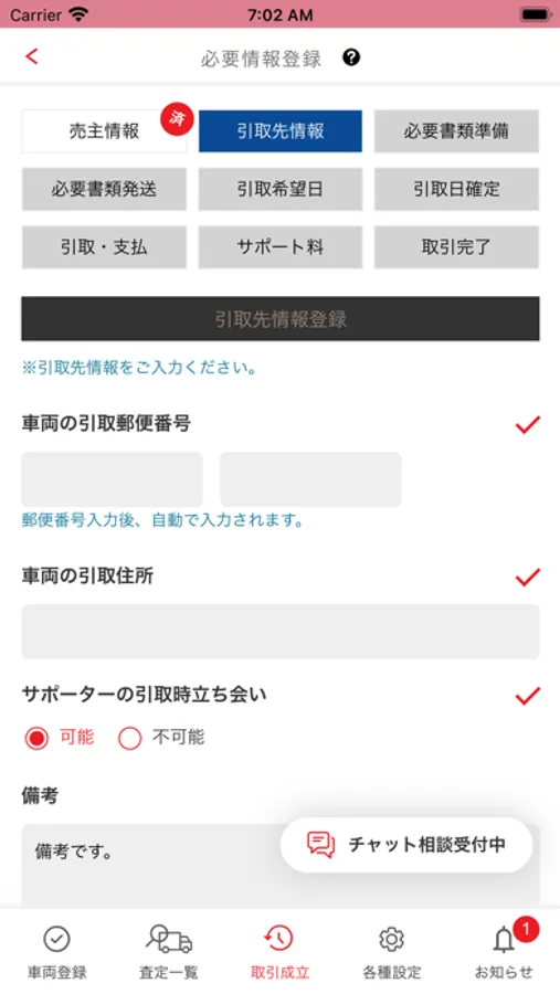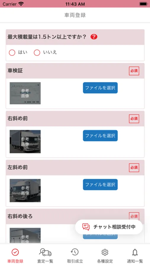 トラックに詳しくなくても大丈夫!アプリに沿って登録をしていくだけの簡単操作。