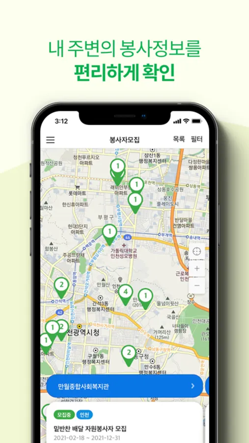 [2] 내 주변의 봉사활동 정보를 편리하게 확인할 수 있습니다.