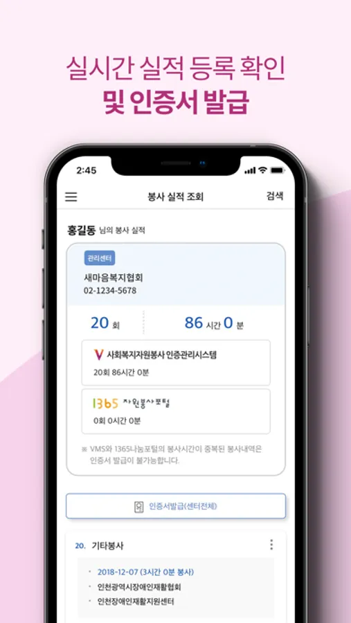 [3] 등록된 봉사 실적 정보를 바로 확인하고 인증서를 발급할 수 있습니다.