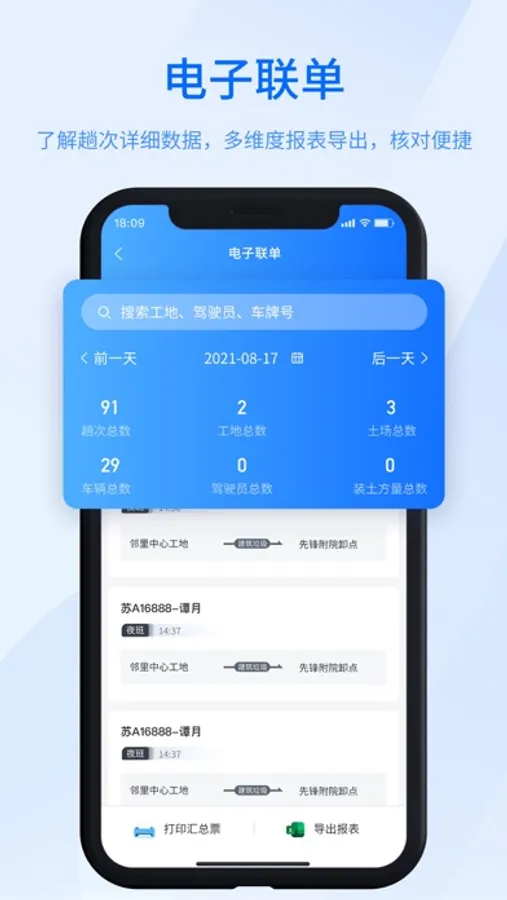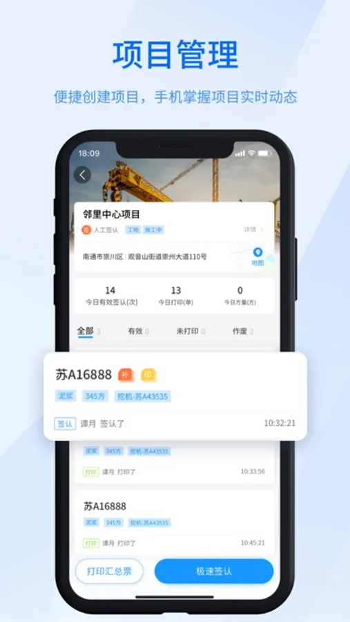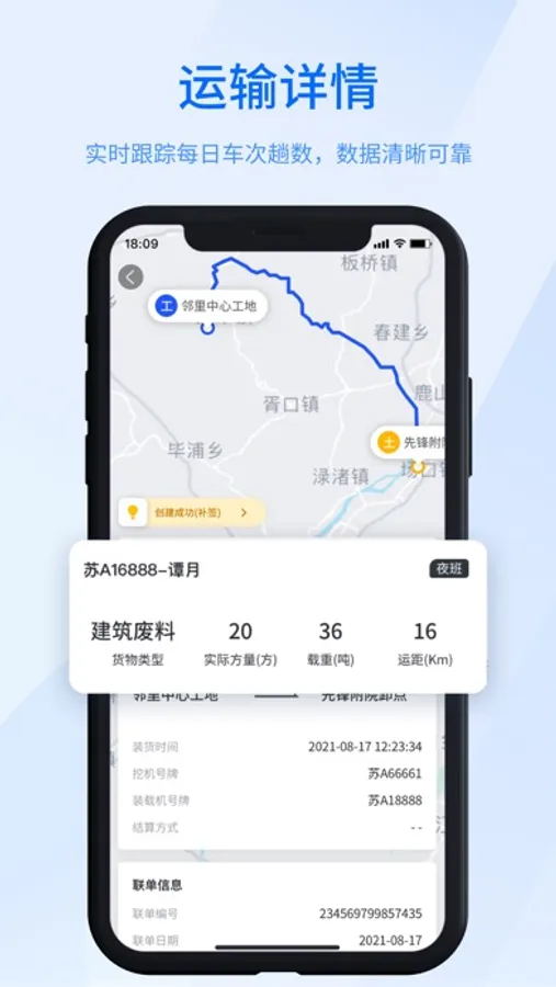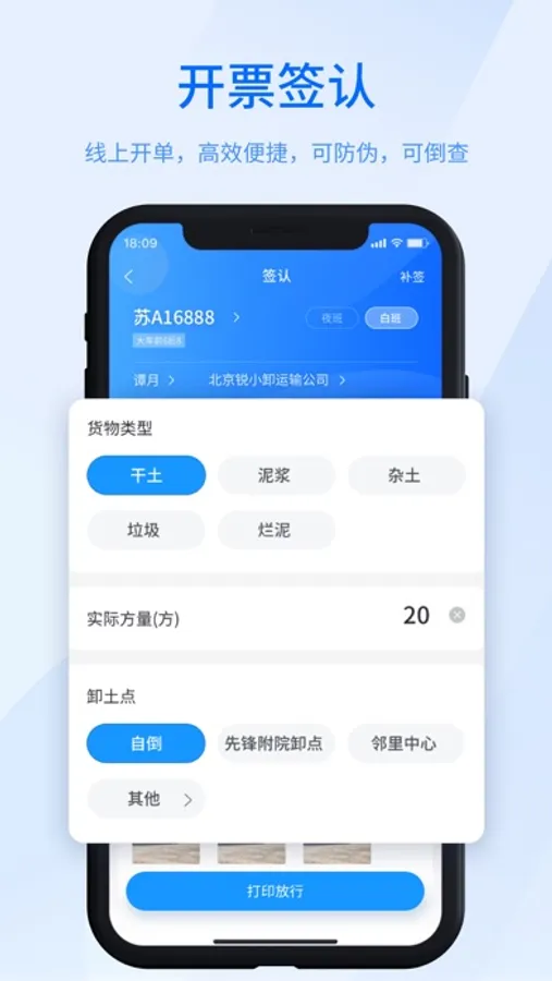 解决土石方运输车辆进出工地及消纳场的签认慢,开单难问题,全面提升趟次计算效率和准确度。通过项目数据、车辆数据和驾驶员数据的关联绑定,全面打通签认各个环节,规范完善开单流程,提升运输效率和可信度,让企业方省心,监管方放心,驾驶方开心。