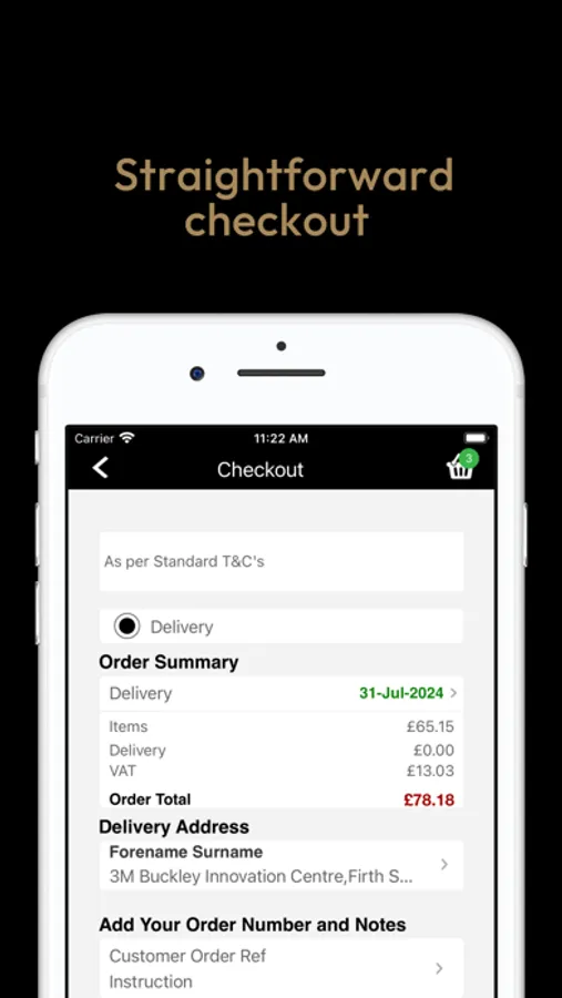 Place your order, then click and submit (partial orders can also be saved in the cloud to finish at a later date, on any compatible device)