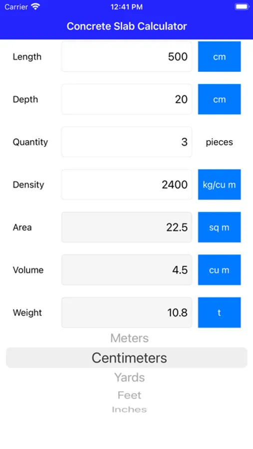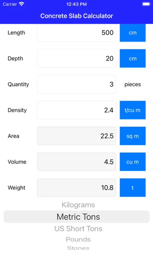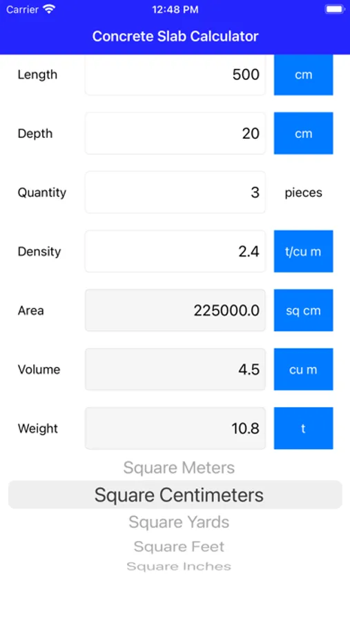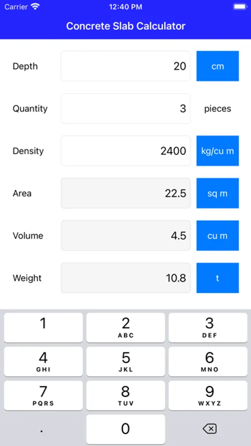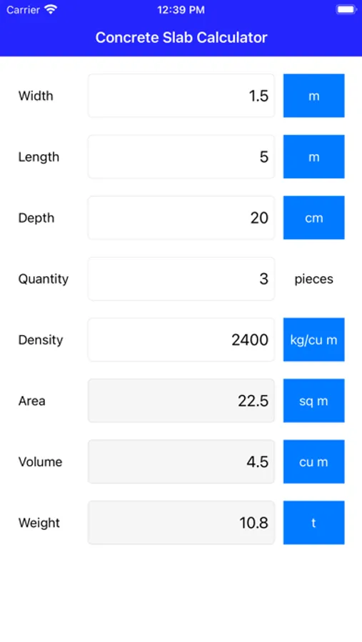 Concrete Slab Calculator is the fastest real-time calculator a concrete slab that quickly convert between the imperial and the metric system’s units for Width, Length, Depth, Density, Area, Volume and Weight in real time and without any hassle.