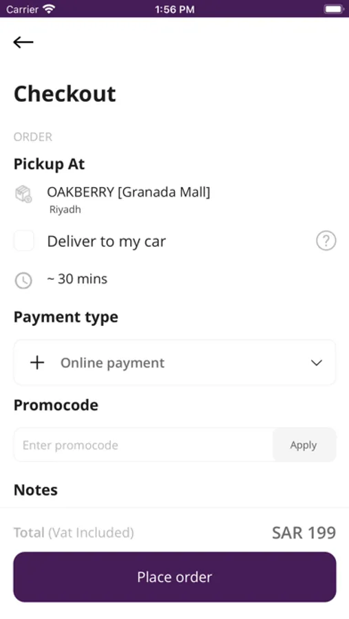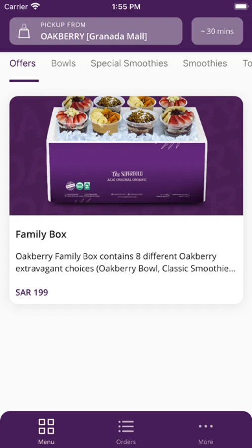 Oak Berry application, a healthy restaurant specialized in international acai fruits.