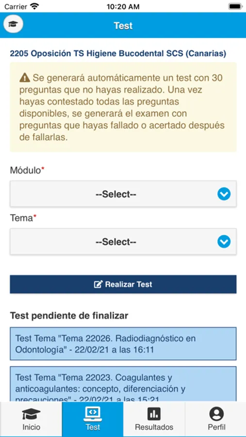 Con esta aplicación podrás practicar test siempre que quieras.