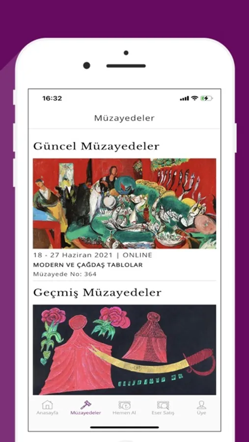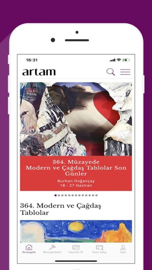 Artam uygulaması koleksiyonculara Türkiye’nin lider müzayede evi Artam Antik A.Ş. hizmetlerine ulaşmak için sıra dışı bir ayrıcalık sunuyor. Müzayedelere göz atabilir ve teklif verebilirsiniz. Modern ve Çağdaş Sanat Eserleri, klasik Türk ve Osmanlı sanatları, 19. yy Avrupa sanatı, antikalar, değerli tablolar ve kitaplar.