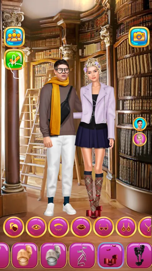 Plunge into the style of Manhattan's elite with one of the best college dress up games for girls with points. The main characters are rich couples trying hard to fit in to the Upper East Side Schools and take their place in the spotlight. Only you can help them become high school fashion queen and king and steal the show. This is the coolest high school crush dress up app for fashion-stylist-to-be.