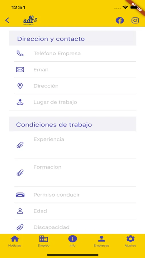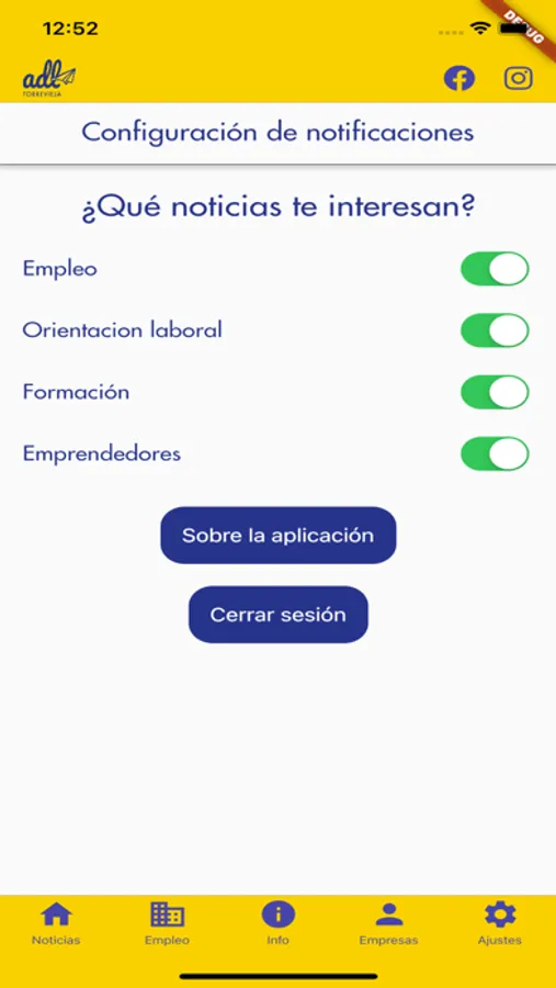 La aplicación no necesitará de que el usuario se registre para poder ver las Noticias y Ofertas de empleo. Pero también dispone de un apartado en el que las empresas se identifican y pueden gestionar sus Ofertas de empleo.