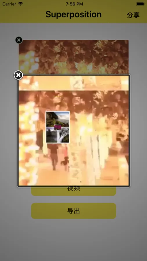 可选择多张图片转换成gif来叠加到视频上,也可将视频叠加到视频上。