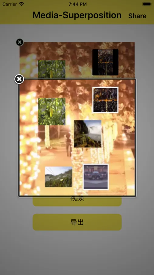 2:选择“多图”打开系统相册,选取多张图片会转换成gif后叠加到视频上。选择“视频”可选择系统相册中的或者拍摄视频来叠加到第一个视频上。