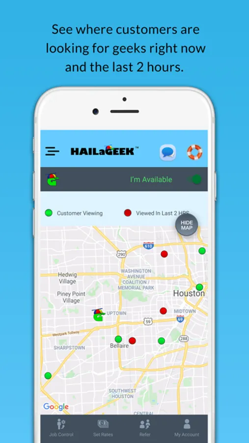 Welcome to the new gig economy of technical help. You have the skills and the experience, and a little extra time, sometimes, but you never know when. Our customers – individuals and small businesses - are always looking for someone to come fix their urgent technical problems: PC repair, Mac repair, smartphone repair, Wifi, etc! Come offer your extraordinary expertise to them. Set your own rates each day, and sign on to work when you want (and just enjoy peace and quiet when you don’t). We’ll never contact you with work offers when you’re signed off. ID verification and background check required. Larger repair teams welcome – register your techs with us individually with your company logo, and watch them double your revenue.