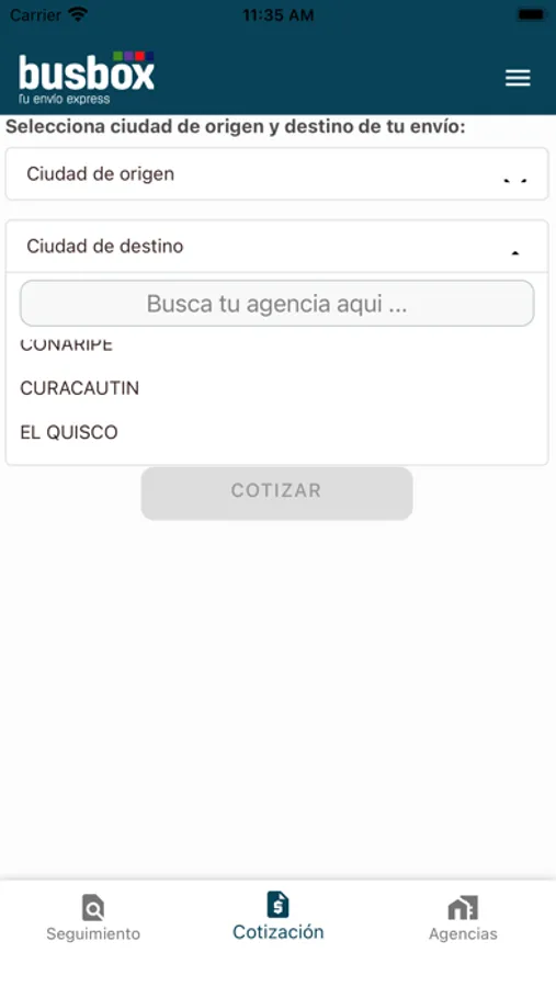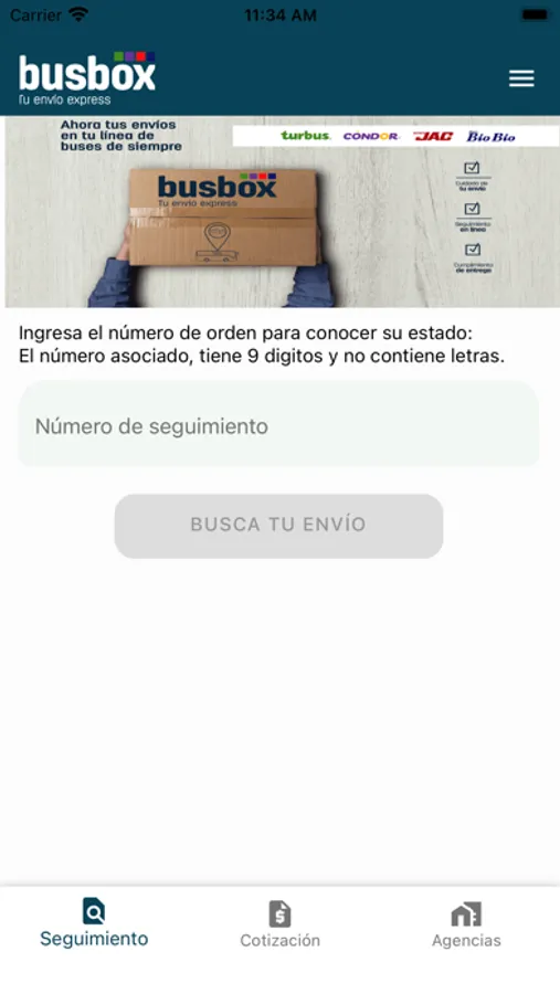 Busbox es un servicio de Envio Express que funciona a través de la red de buses de Turbus, esto facilita a personas, emprendedores y empresas el envío de sus encomiendas a lo largo de Chile, todos los días, a distintos horarios, con la ventaja de poder cumplir sus entregas en menor tiempo y a menor costo.