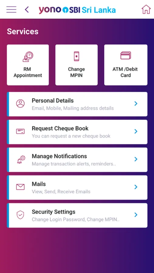Users can conveniently access below features in YONO SBI Sri Lanka