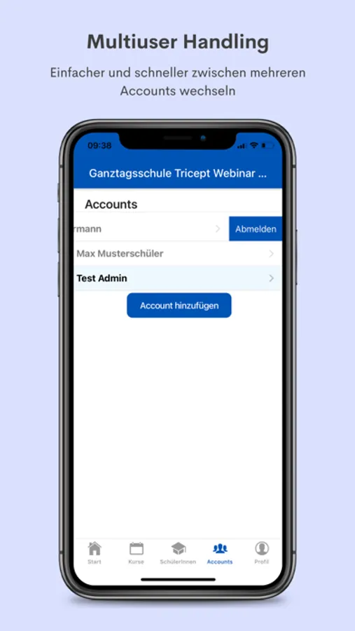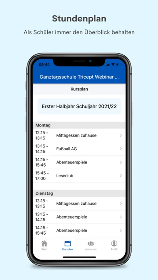 Außerdem sieht der Schüler alle wichtigen Informationen zu seinen Kursen auf einen Blick wie zum Beispiel Raum, Tag und Uhrzeit